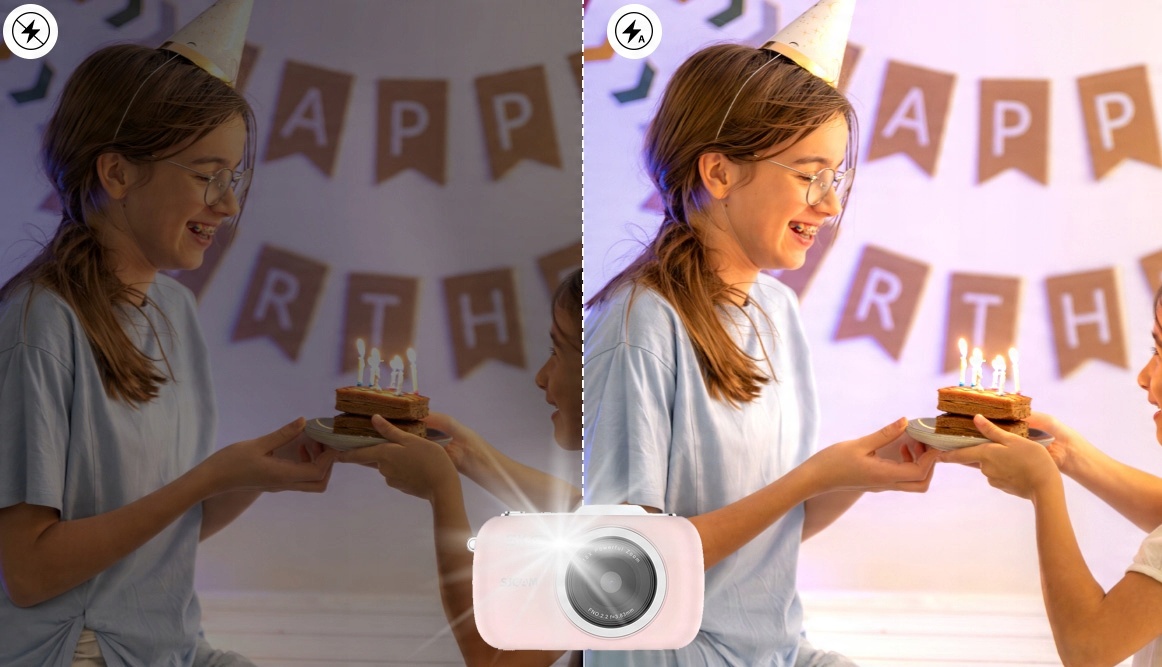 Wbudowana lampa błyskowa zwiększa jasność w warunkach słabego oświetlenia, oświetlając główny obiekt. Daje to lepsze efekty fotograficzne.