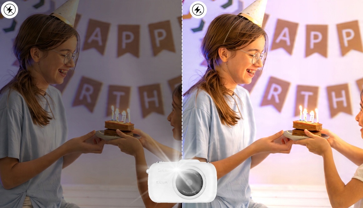 Wbudowana lampa błyskowa zwiększa jasność w warunkach słabego oświetlenia, oświetlając główny obiekt. Daje to lepsze efekty fotograficzne.