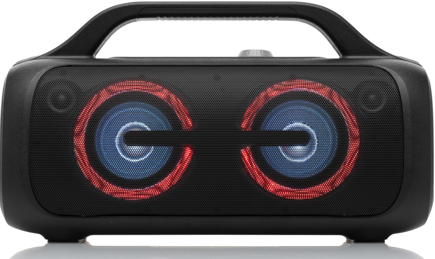 Certyfikat IPX5 gwarantuje odporność głośnika na zachlapanie wodą, dzięki czemu lekki deszcz nic mu nie zrobi. Ponadto fajnie się bawi dzięki wbudowanym światłom LED. Na jednym ładowaniu bateria litowo-jonowa działa i świeci do 16 godziny.