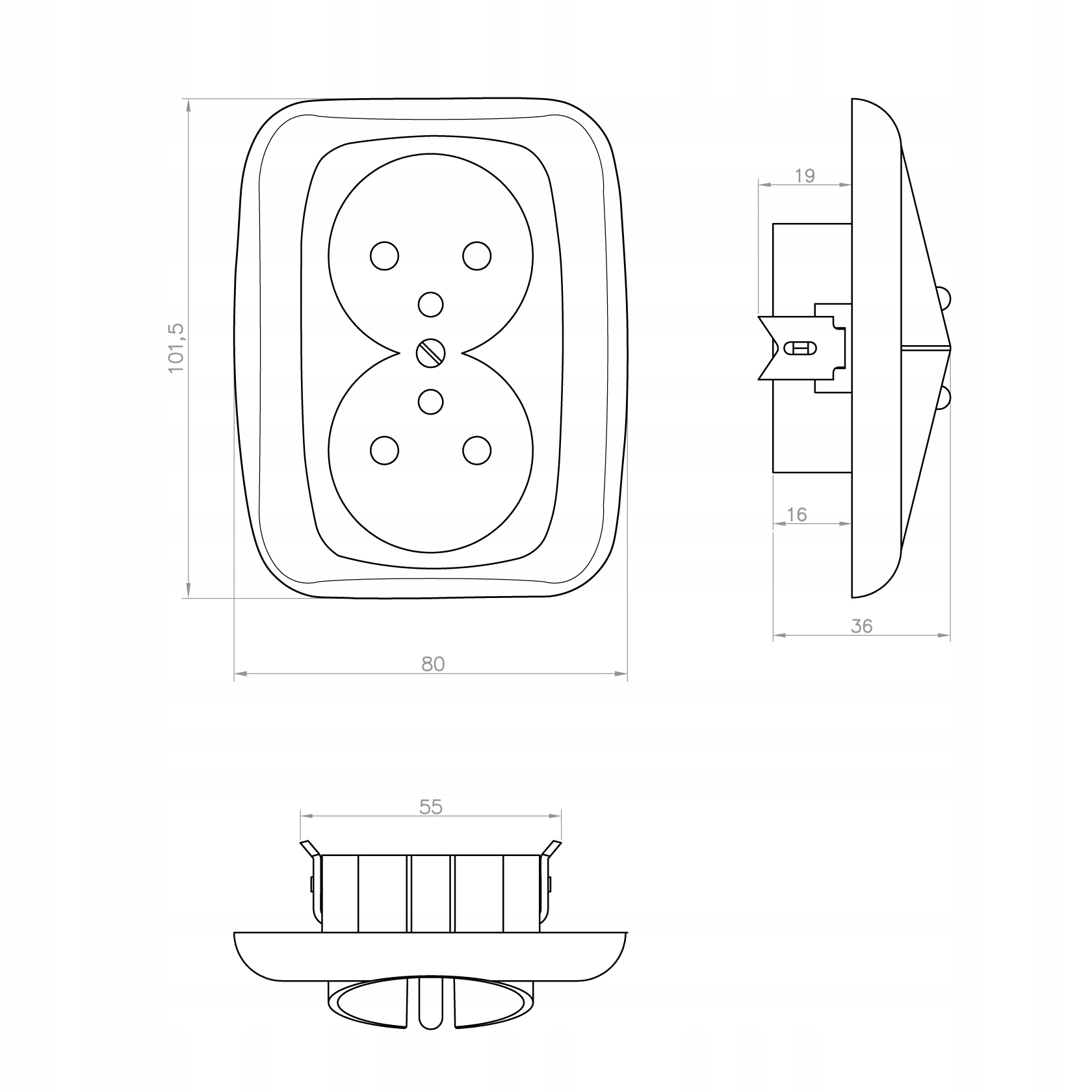 - Typ osprzętu: gniazdo wtyczkowe podwójne