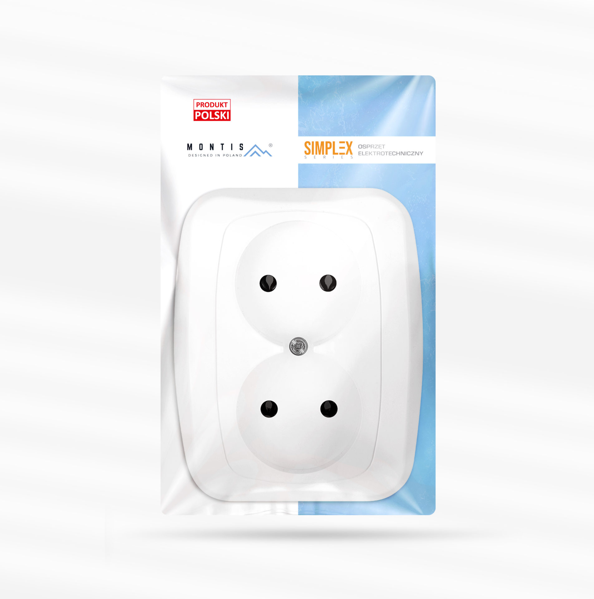 Gniazdo Elektryczne ścienne Montis biały wtyczkowe podwójne PT-5A SIMPLEX