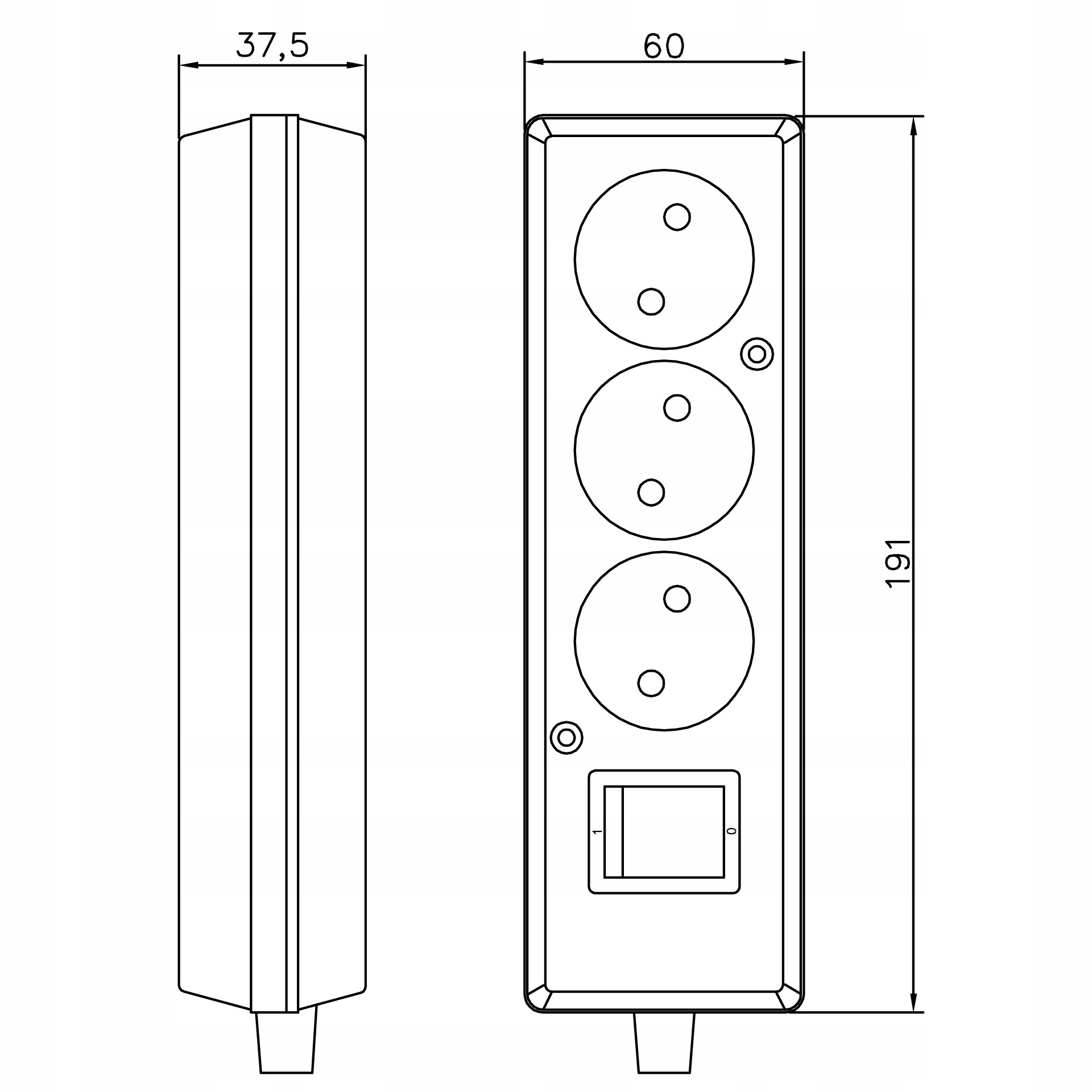 - Typ wtyczki: Gniazdo trzykrotne z wyłącznikiem rozbieralne; 3x2p
