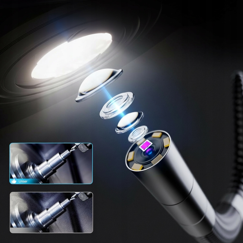 Przemysłowa kamera endoskopowa z obrotową głowicą 360° to zaawansowane narzędzie diagnostyczne, stworzone do precyzyjnej kontroli trudno dostępnych przestrzeni. Idealna do zastosowań w motoryzacji, przemyśle, serwisach technicznych oraz lotnictwie.