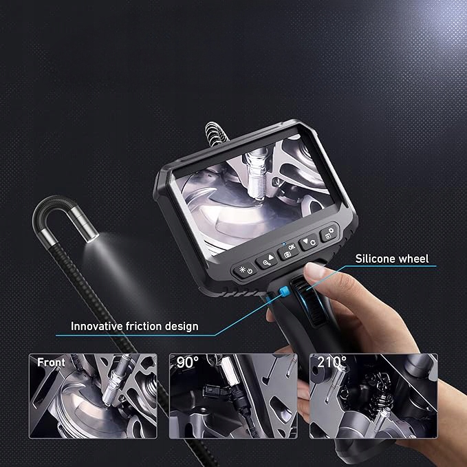 Unikalna konstrukcja sondy pozwala na elastyczne ustawienie kąta widzenia – idealna do zakamarków, gdzie zwykła kamera nie sięga.