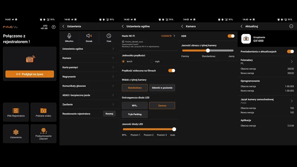 - Otrzymuj zrozumiałe komunikaty o pracy wideorejestratora w języku polskim.