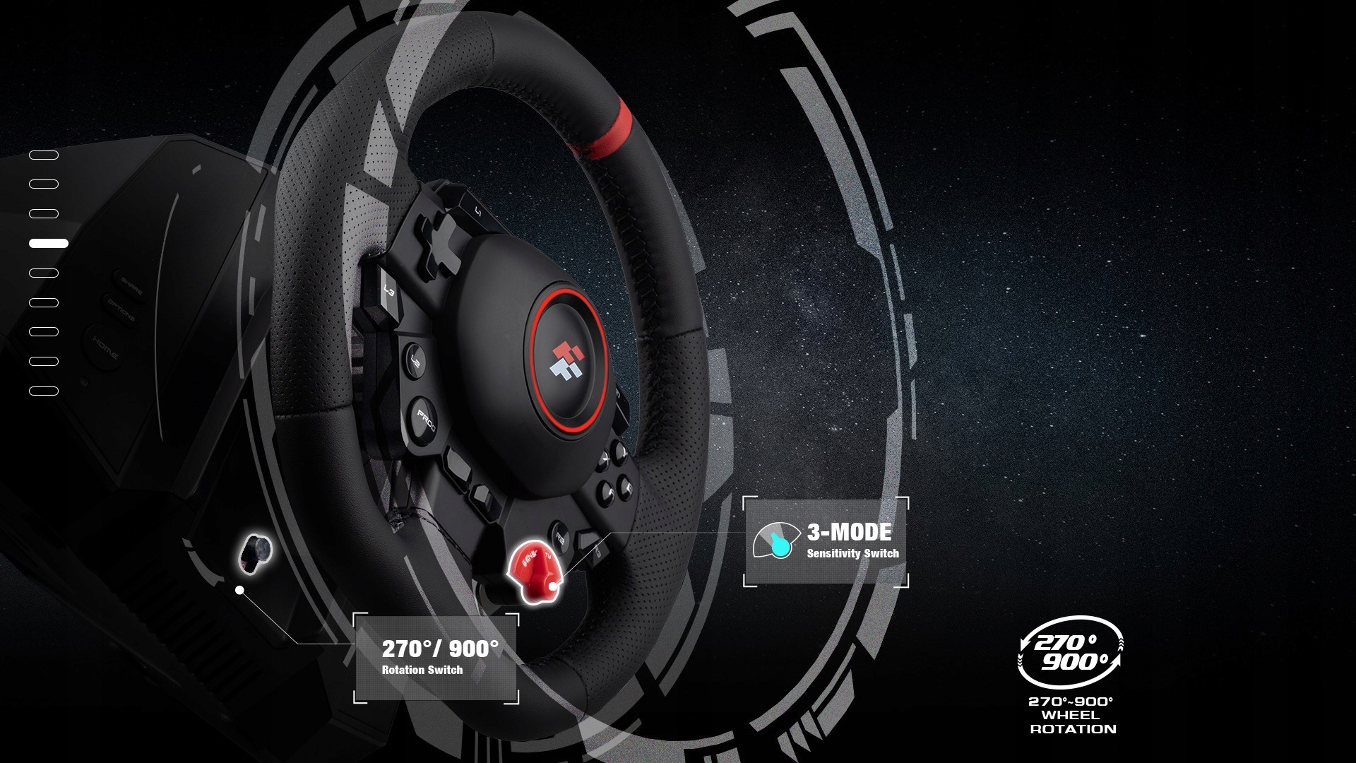 Do wyboru są dwa tryby obrotu, 270 stopni do dynamicznych gier arcade oraz 900 stopni dla symulacji jazdy.