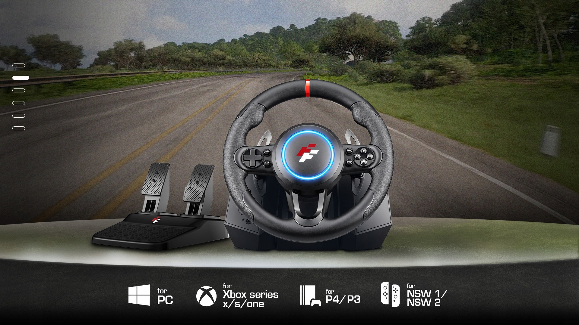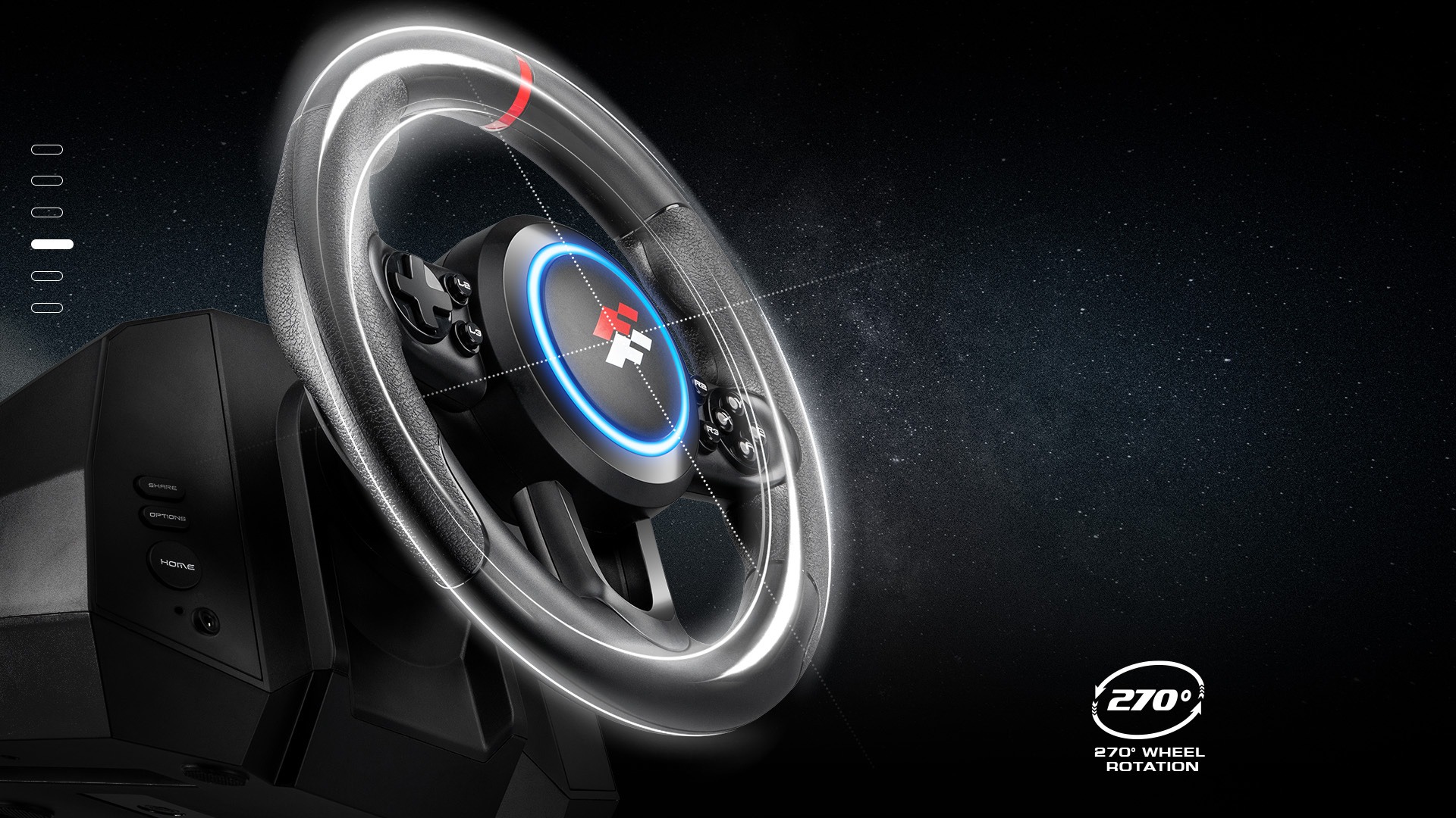 Zastosowanie technologii Hall Effect w kierownicy i pedałach zapewnia płynne oraz dokładne sterowanie. Zakres obrotu 270 stopni daje dobrą równowagę pomiędzy dynamiką a kontrolą, szczególnie w grach typu arcade i semi symulacyjnych. Wbudowane wibracje zwiększają poczucie kontaktu z nawierzchnią i reakcję pojazdu.