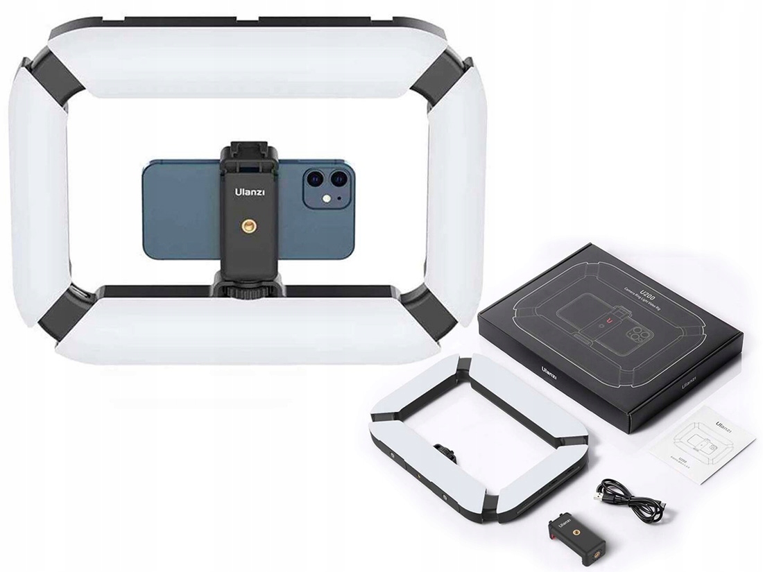 Ulanzi U200 to nie jest zwykła lampa – to przenośne centrum dowodzenia dla fotografa i filmowca. Dzięki unikalnej konstrukcji, która pozwala zamontować smartfon, aparat lub kamerę sportową w centralnej części panelu, zyskujesz równomierne, miękkie światło oraz wygodę pracy „z ręki”. Całość może pełnić również funkcję ergonomicznego uchwytu.