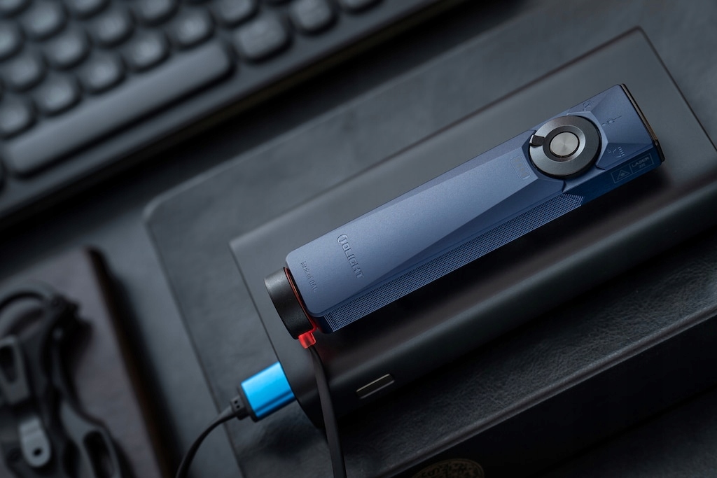 Zasilanie zapewnia wbudowany akumulator Li-Po 1500 mAh, ładowany przez magnetyczny kabel USB-C. Latarka oferuje 8 trybów pracy, w tym ekonomiczny o czasie działania do 11 dni. Wskaźnik poziomu naładowania umieszczony przy włączniku pozwala łatwo kontrolować stan energii.