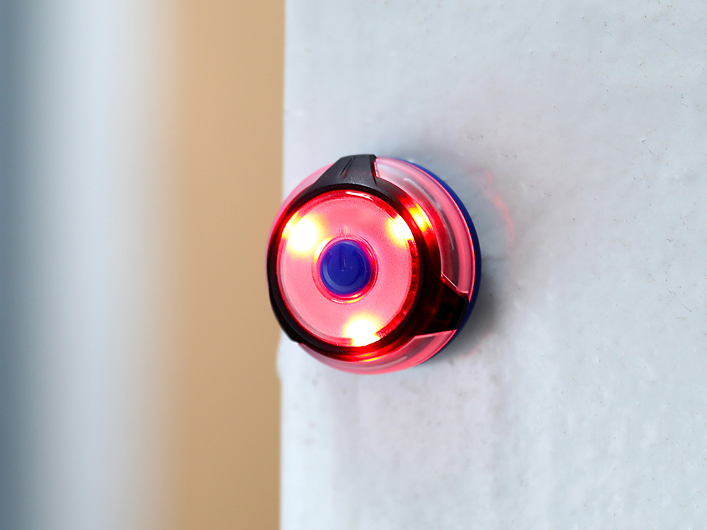 Lampa oferuje cztery tryby pracy (światło stałe, błysk, błysk synchroniczny, SOS) oraz sześć opcji kolorystycznych: czerwony, zielony, niebieski, biały, RGB chase i alert. Wbudowany akumulator 3,7 V / 240 mAh zapewnia do 910 minut działania, a ładowanie odbywa się przez port USB-C.