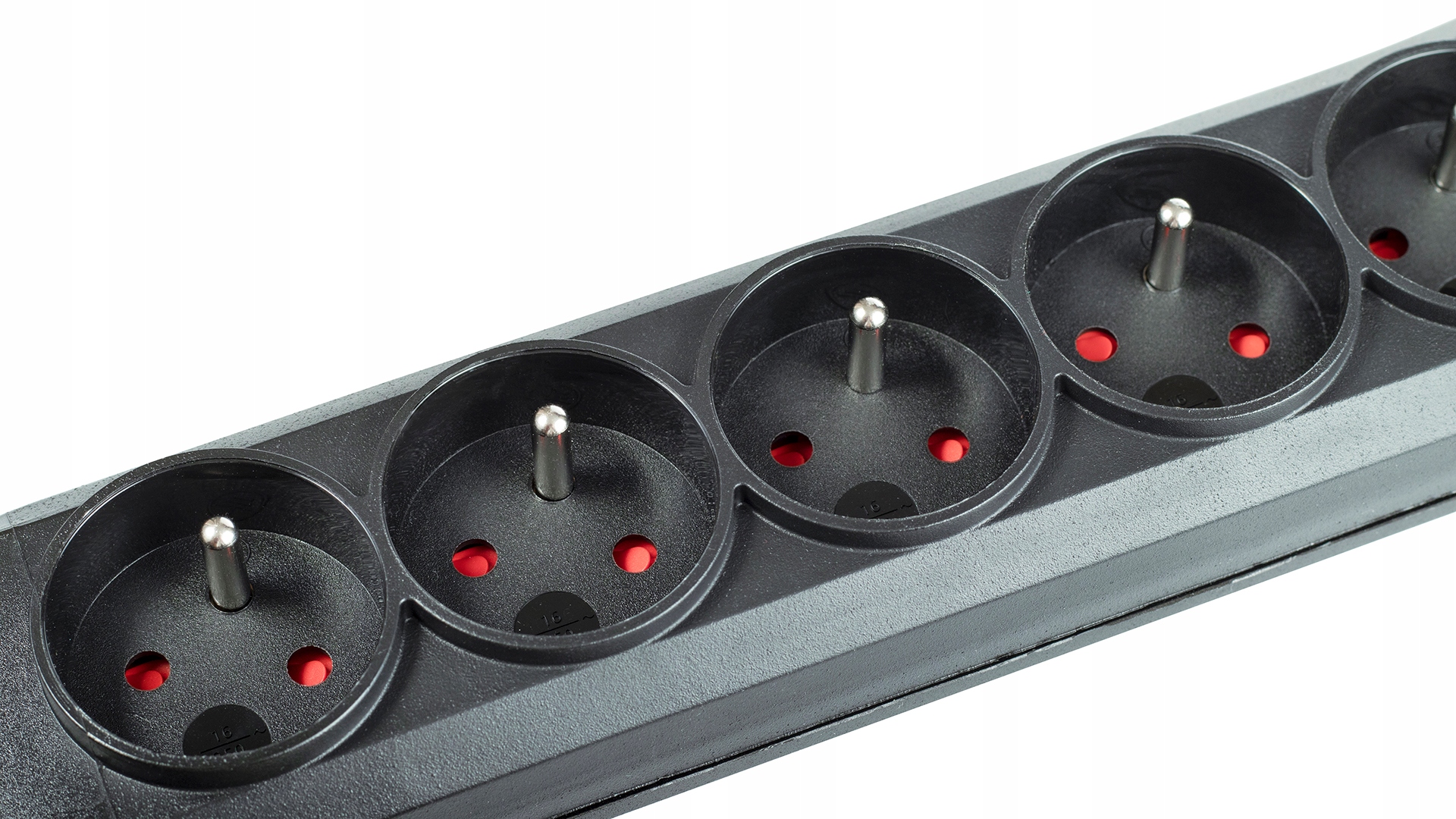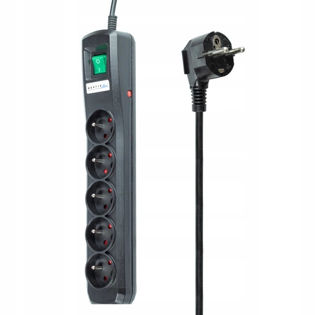 Listwa wyposażona jest w podświetlany wyłącznik, wygodny automatyczny bezpiecznik oraz samogasnące tworzywo sztuczne.