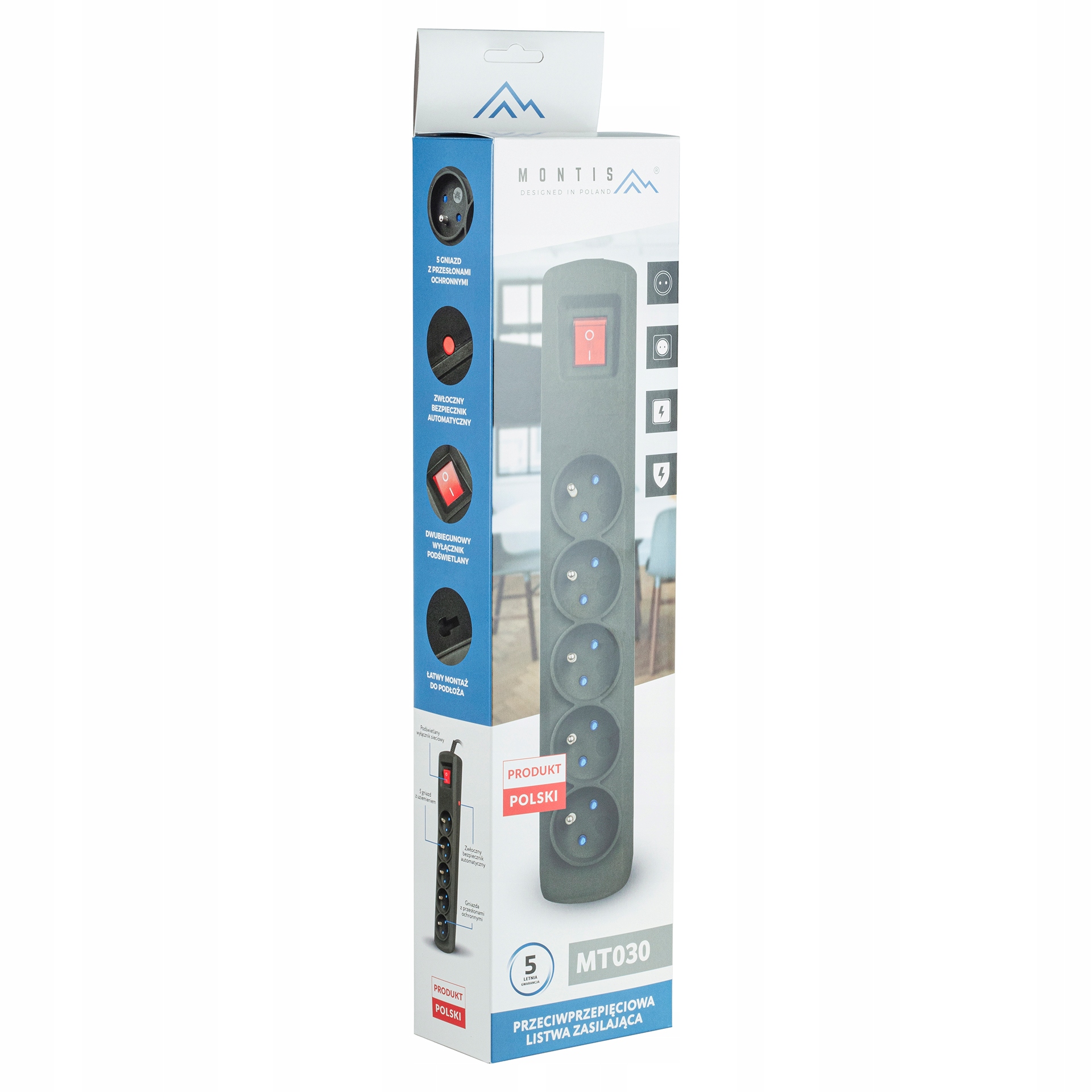 Przeciwprzepięciowa listwa zasilająca marki Montis stanowi skuteczną ochronę sprzętu elektronicznego.