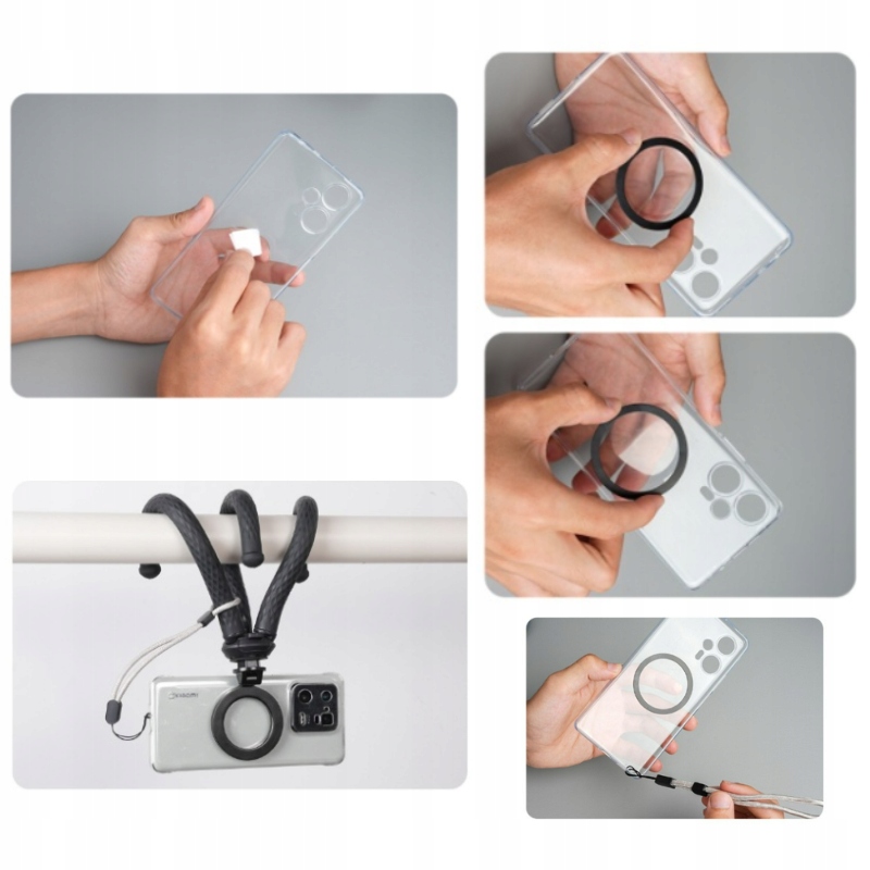 Ten magnetyczny, elastyczny statyw do mini telefonu jest wyposażony w 16 silnych magnesów neodymowych, aby uzyskać ścisłą przyczepność i umożliwić natychmiastowe fotografowanie jedną ręką. Jednocześnie nie musisz się martwić, że Twój telefon łatwo upadnie ze względu na stabilną adsorpcję. Ponadto konstrukcja pierścienia magnetycznego pozwala na łatwe trzymanie jedną ręką w celu zakończenia pobierania i upuszczania.