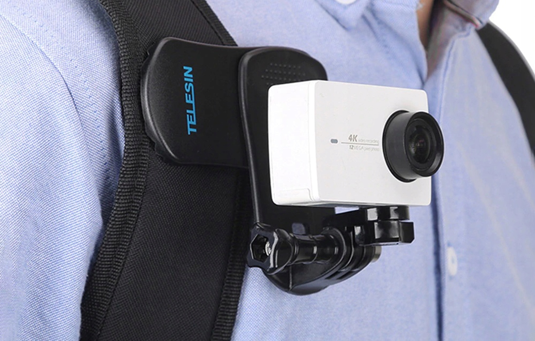 Mocowanie jest kompatybilne z całym szeregiem urządzeń. Za jego pomocą przyczepisz do plecaka kamery sportowe takie jak GoPro Hero 8, 7, 6 czy 5, a także DJI Osmo Action. Umożliwia również montaż Xiaomi Yi.