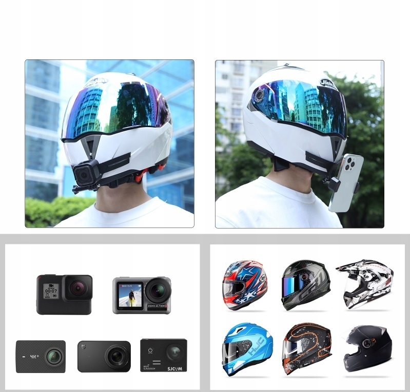 To praktyczne akcesorium umożliwia stabilne zamocowanie kamery na kasku motocyklowym, rowerowym, narciarskim czy quadowym. Idealnie sprawdzi się do nagrywania ujęć POV oraz dynamicznych filmów podczas jazdy.