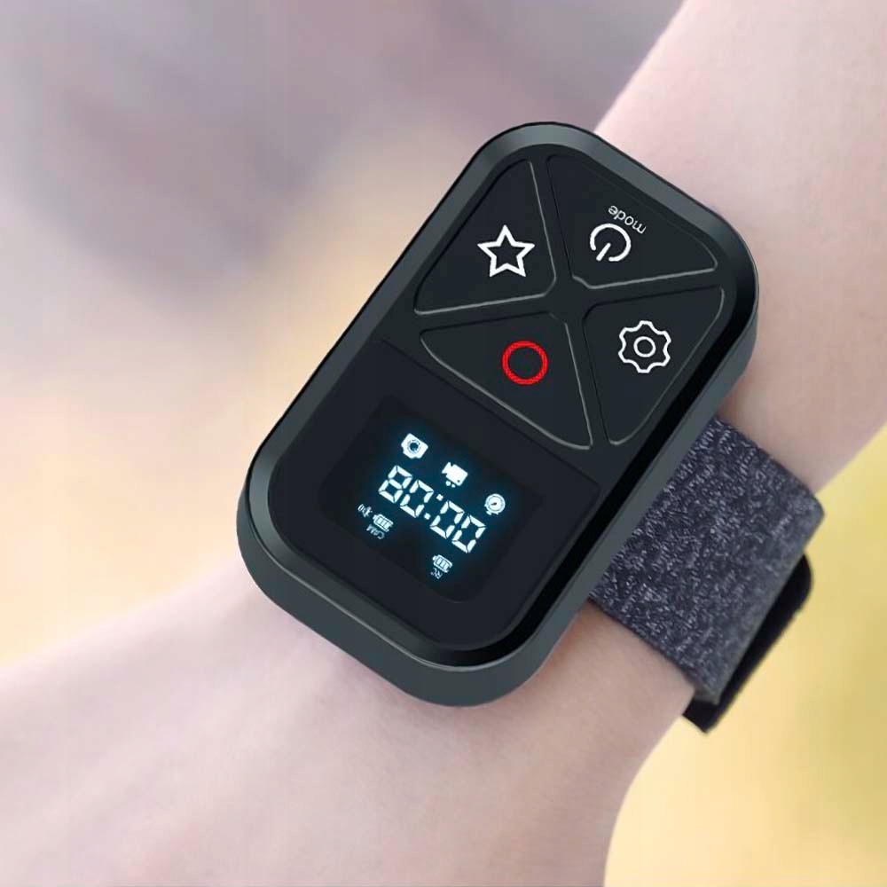 Umożliwia zdalny dostęp do wszystkich funkcji kamery, włącznie z uruchamianiem nagrywania, włączania/wyłączania kamery oraz zmiany ustawień. Pilot posiada duży zasięg aż do 80m. Można go umieścić na nadgarstku lub kijku selfie