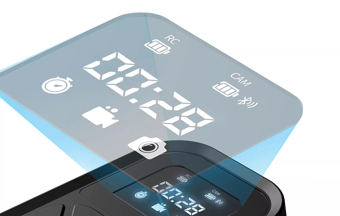 - DUŻY ZASIĘG - Przy braku zakłóceń sygnału odległość sterowania może osiągnąć do 80 m. pilot posiada możliwość sterowania 5 kamerami jednocześnie (tylko gopro8/9/10/max).