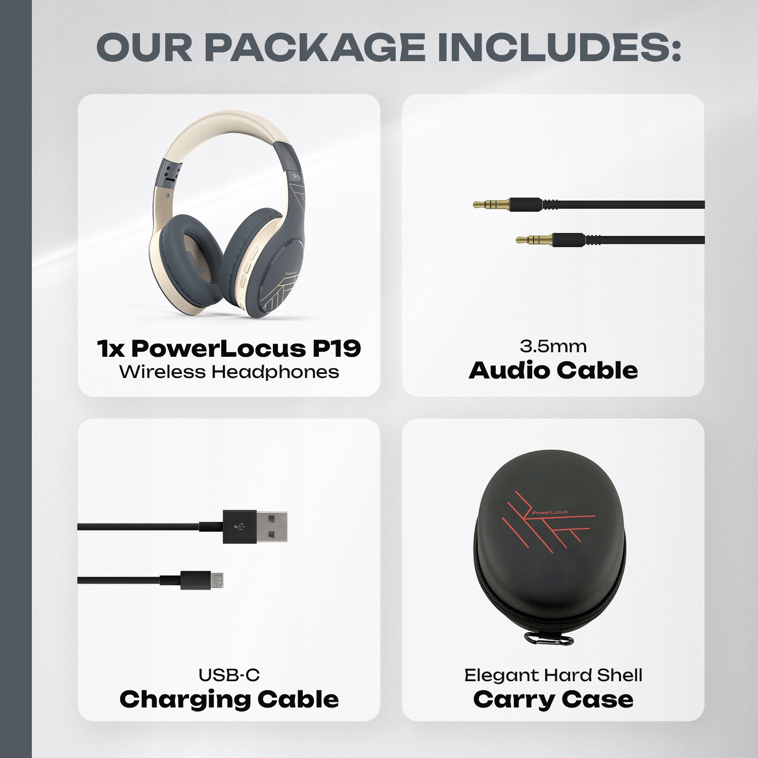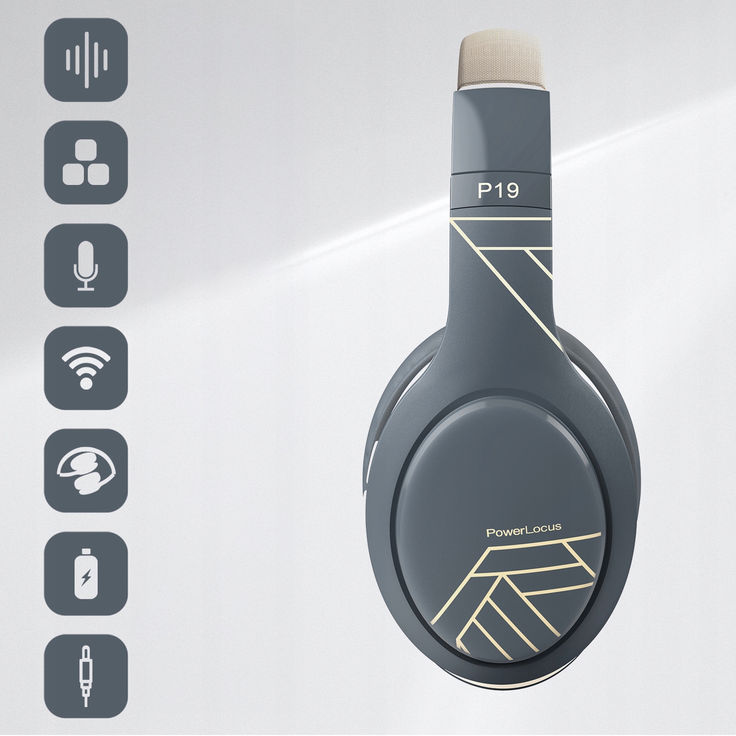 PowerLocus P19 – Bezprzewodowe Słuchawki Nauszne z Mikrofonem i Etui Premium Asphalt Grey