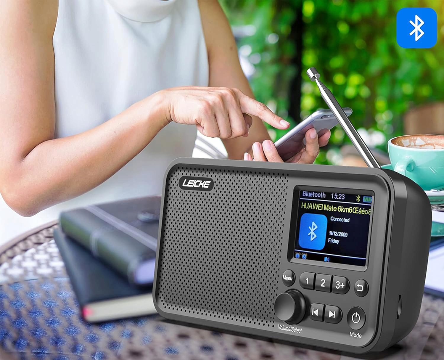 【Zasilanie prądem lub akumulatorem 】 radio LEICKE DAB+ ma wbudowany akumulator 4000 mAh i złącze zasilania 5 V DC. Idealny do domu i w podróży.