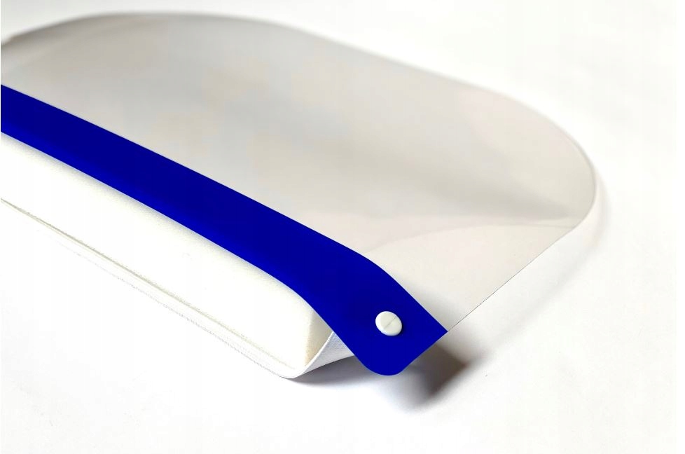 Przyłbica ochronna z osłoną wykonaną z bezbarwnego lekkiego materiału 0,4mm mocowaną na pasku z możliwością regulacji.Pasek posiada miękką piankę która pozwala na lepsze dopasowanie oraz wpływa na komfort użytkowania.