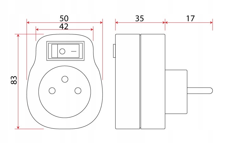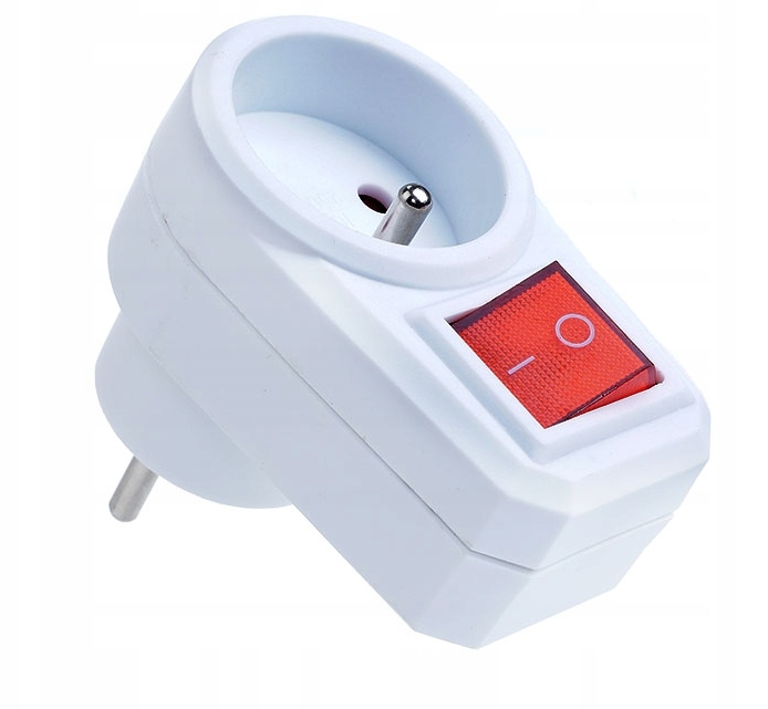 Rozgałęźnik sieciowy, pojedynczy z uziemieniem i przełącznikiem.