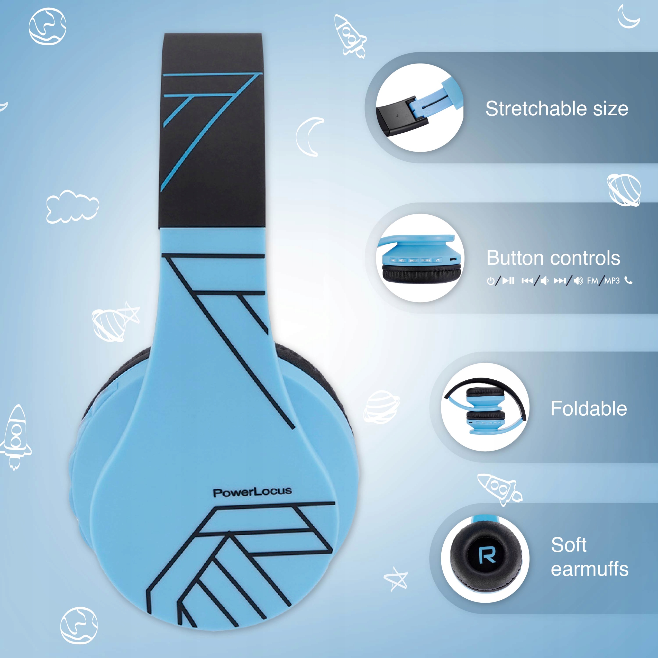 PowerLocus P1 Kids to nowoczesne słuchawki dziecięce zaprojektowane z myślą o bezpieczeństwie, wygodzie i codziennym użytkowaniu. Łączą bezpieczny limit głośności, stabilne połączenie Bluetooth oraz aż trzy tryby pracy: bezprzewodowy, przewodowy i odtwarzanie z karty microSD oraz radio FM.
