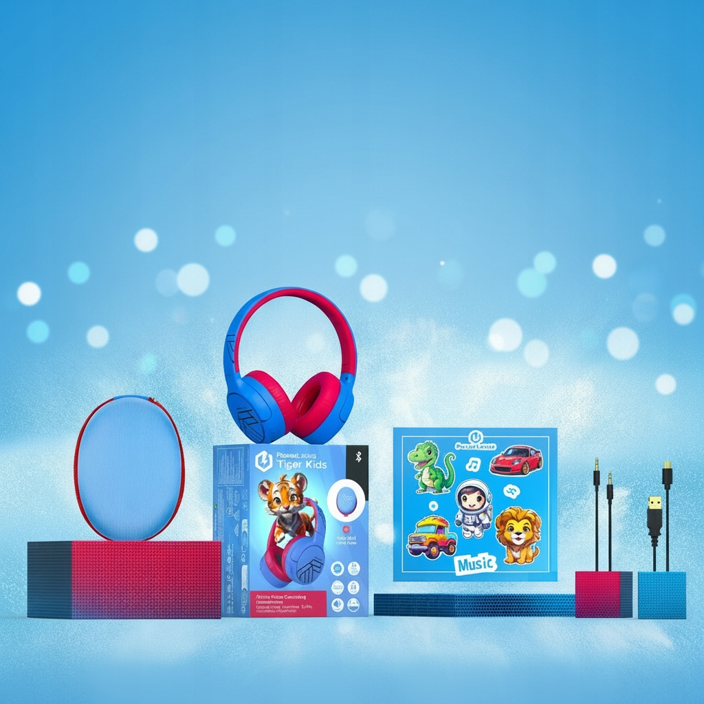 W zestawie znajdują się kolorowe naklejki PowerLocus Tiger, dzięki którym dziecko może spersonalizować swoje słuchawki. Dodatkowo etui transportowe chroni sprzęt i pomaga utrzymać porządek.