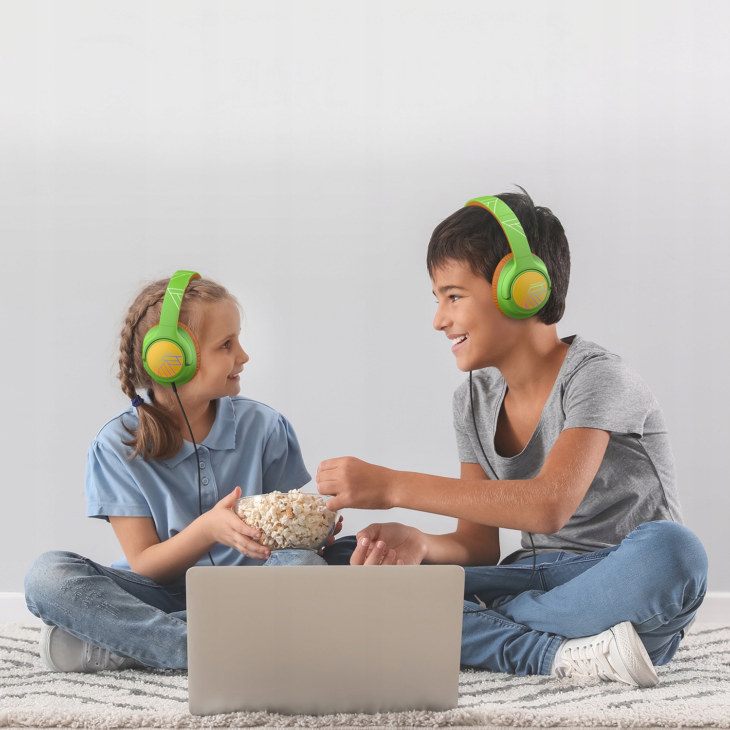 Kompatybilne z telefonami, tabletami, komputerami, konsolami i TV. Dzięki dołączonemu Y-adapterowi możesz podłączyć 2 słuchawki do jednego urządzenia – idealne na wspólne oglądanie bajek!