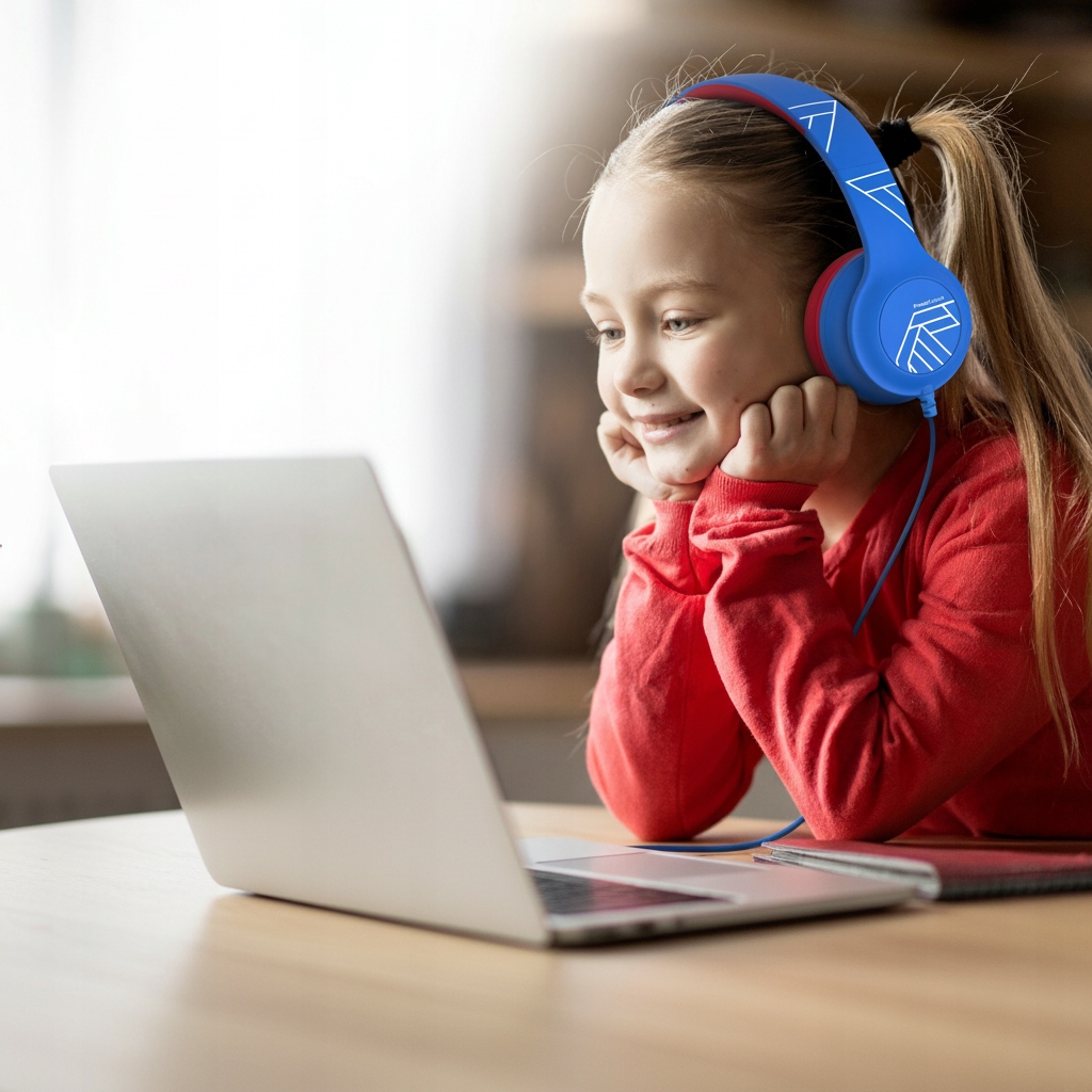 Przetworniki 40 mm zapewniają czysty dźwięk stereo z wyraźnymi wysokimi tonami, zrównoważonym środkiem i głębokim basem. Idealne do słuchania muzyki, oglądania bajek, nauki online oraz gier.