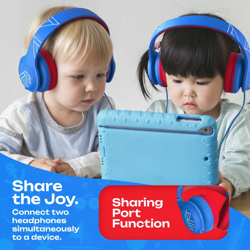 Słuchawki przewodowe dla dzieci PowerLocus PLED Kids niebiesko czerwone - wejście jack 3.5 mm