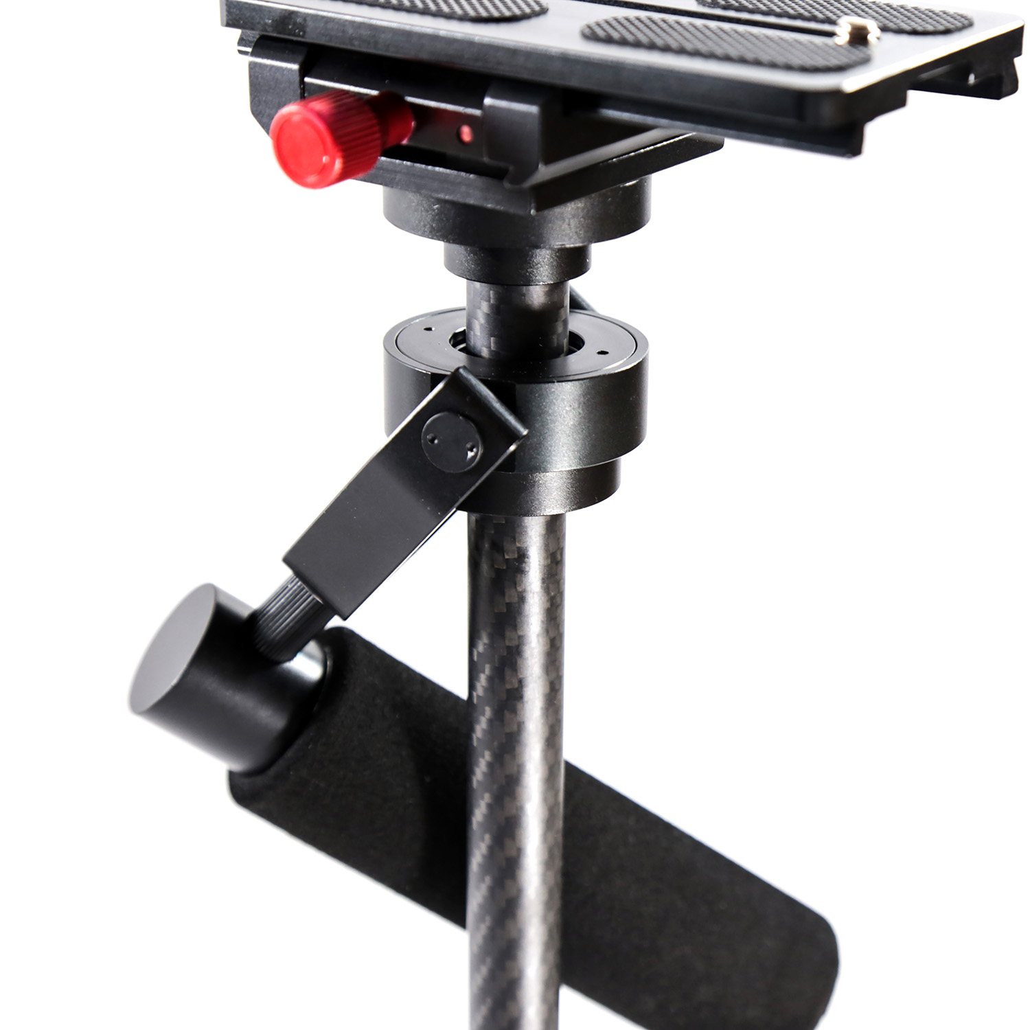 Steadycam wyposażony jest w przyjemną, ergonomicznąrękojeść, pokrytą miękką w dotyku pianką. Stabilizator daje również możliwosc regulacji głowicy w aż dwóch płaszczyznach.