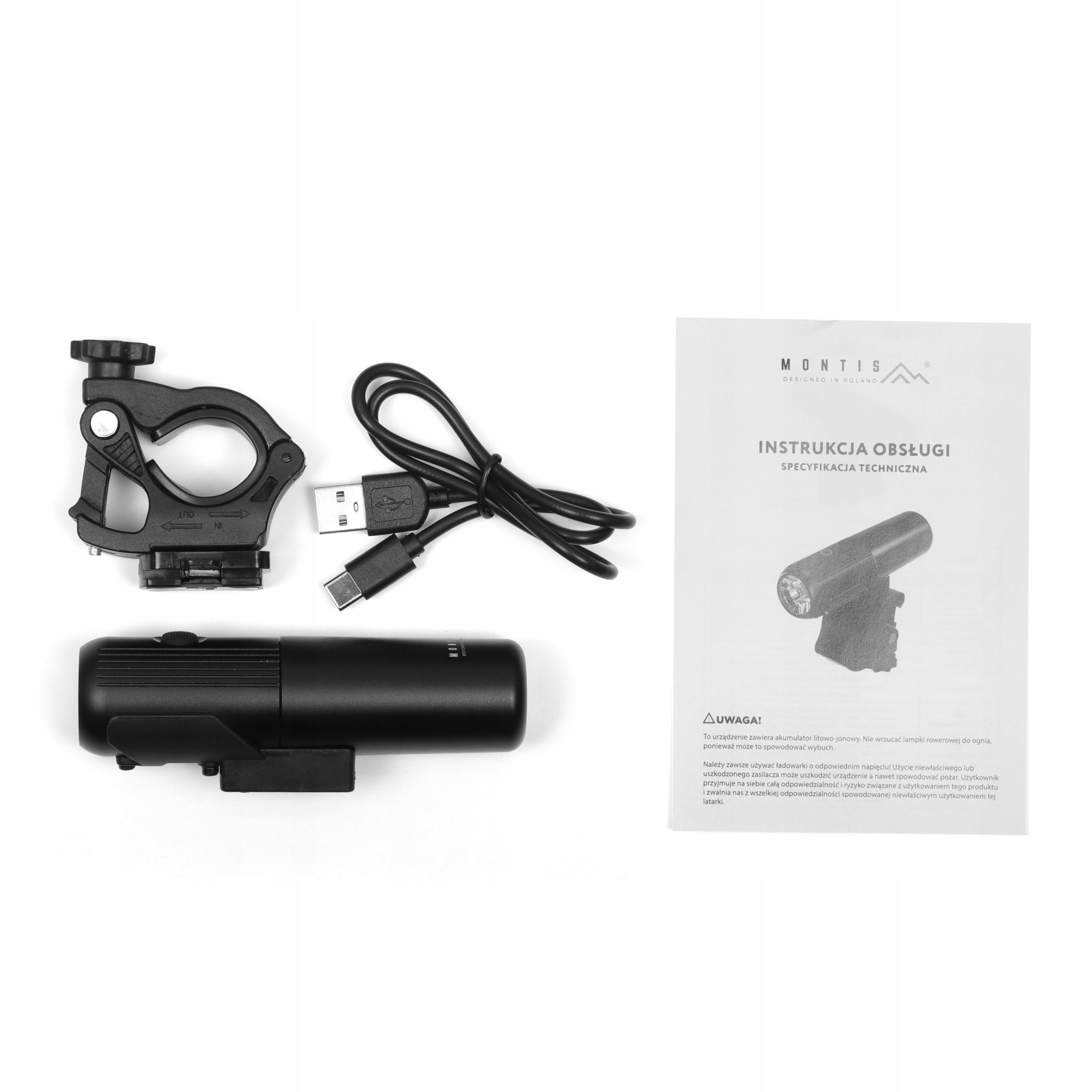 ➡️ Dołączone akcesoria: instrukcja, przewód do ładowania, uchwyt do mocowania