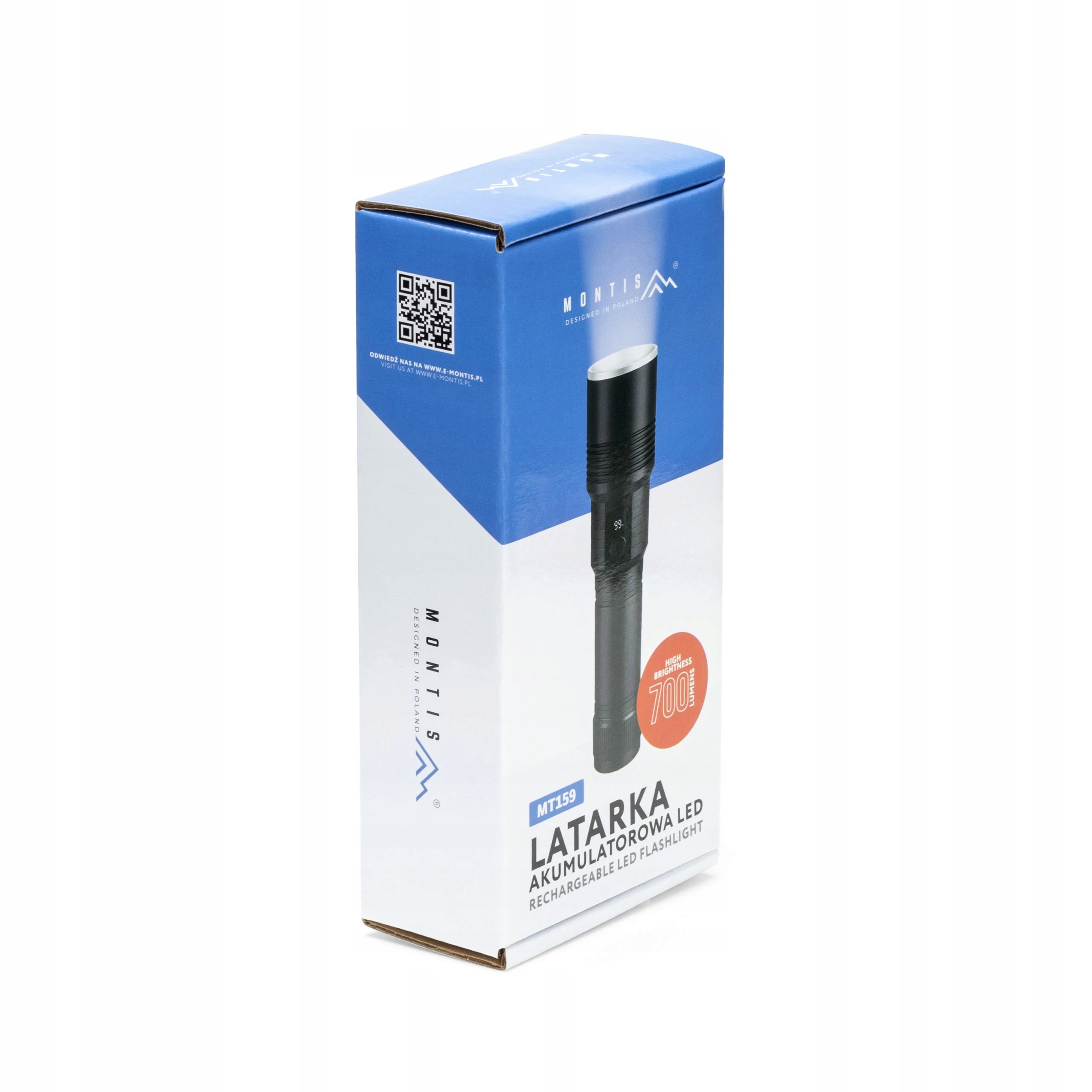 - Dołączone akcesoria: kabel USB-A – USB-C; zawieszka na nadgarstek; akumulator typu 26650; instrukcja obsługi