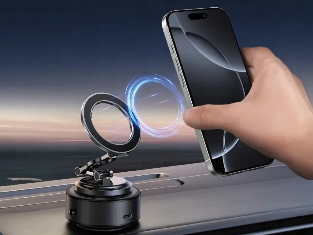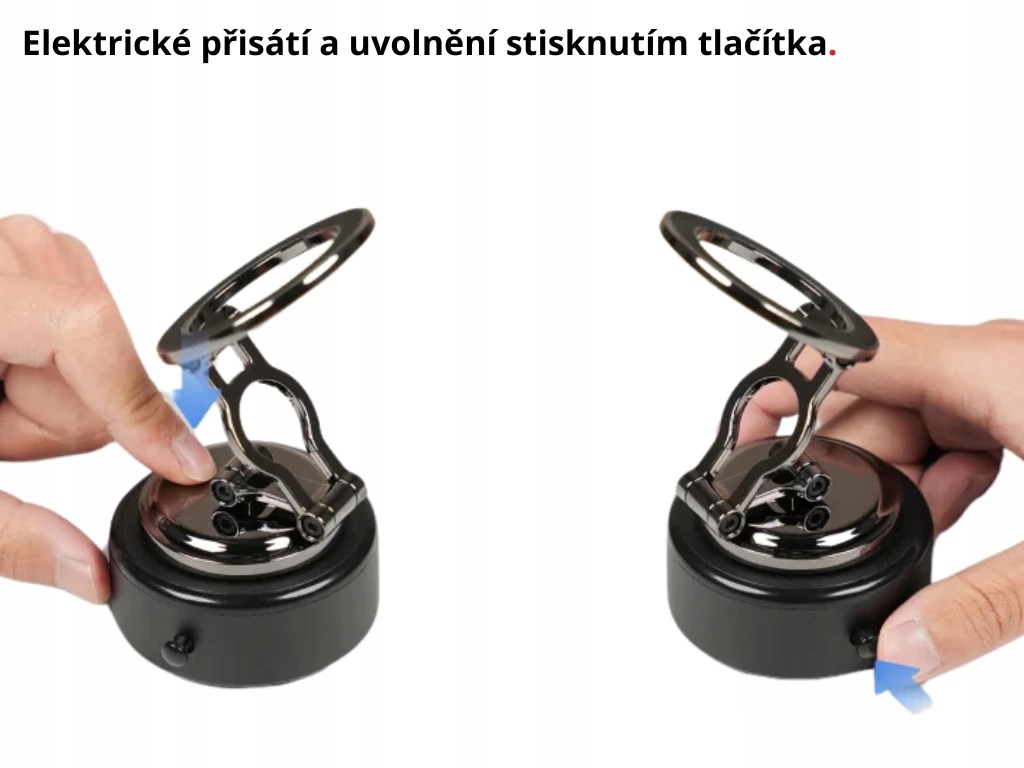 Elektryczna przyssawka magnetyczna TELESIN to inteligentne rozwiązanie pro mocowania telefonu na płaskich, gładkich powierzchniach, takich jak szkło, metal, auto lub płytki. Mocowanie se i zwalnia za pomocą jednego przycisku, dzięki czemu przyssawka zapewnia stabilne podciśnienie bez ręcznego pompowania.