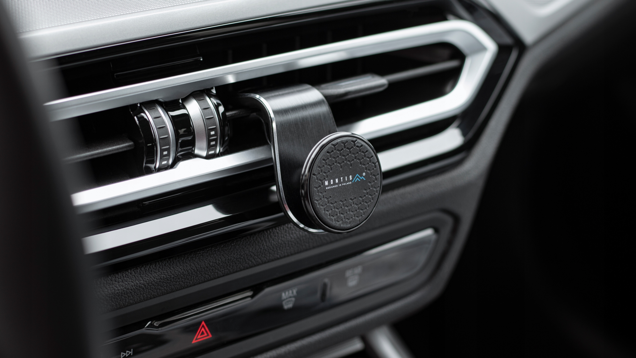 Montaż do kratki nawiewu jest szybki i intuicyjny, a stabilność mocowania zapewnia bezpieczne użytkowanie urządzenia nawet na nierównych drogach.