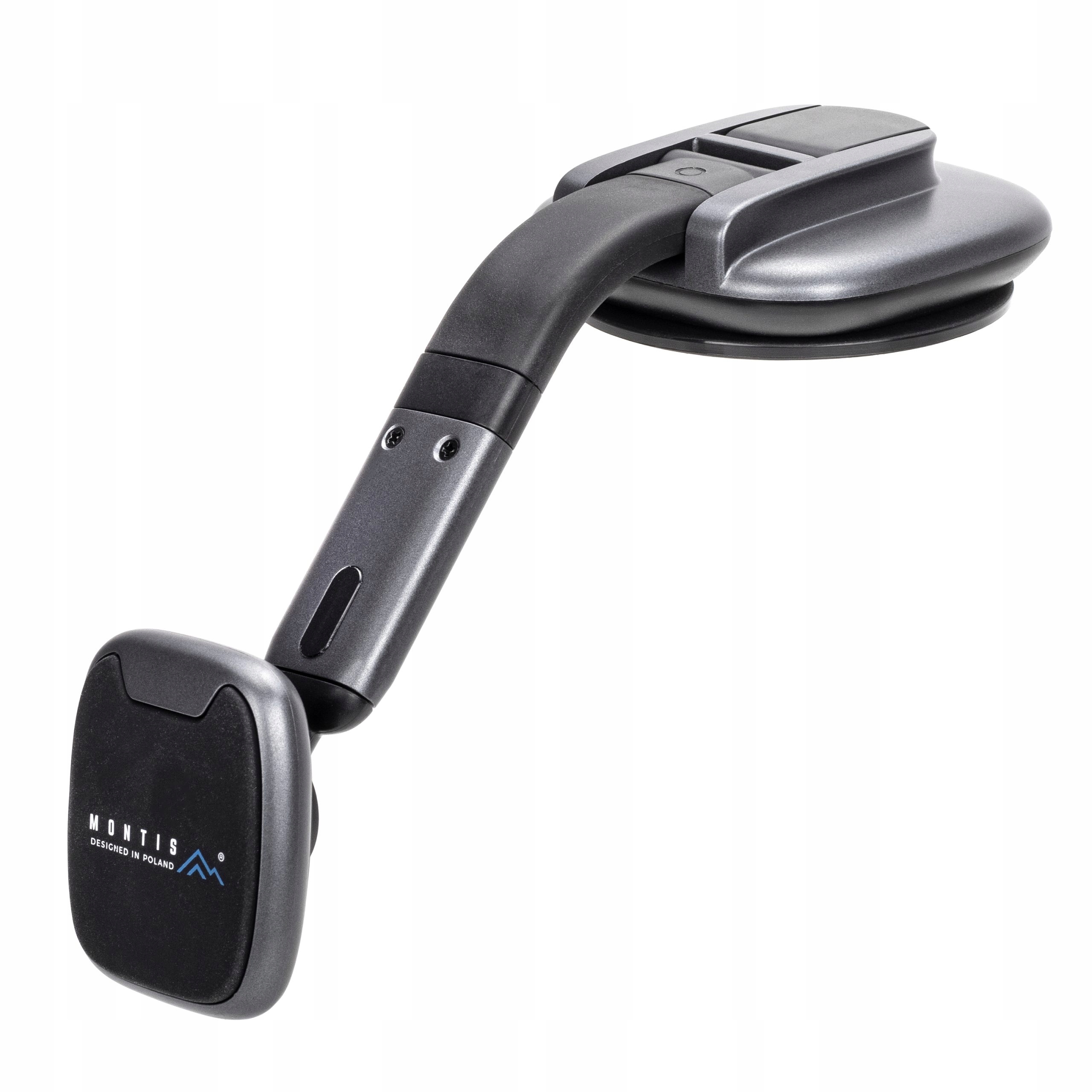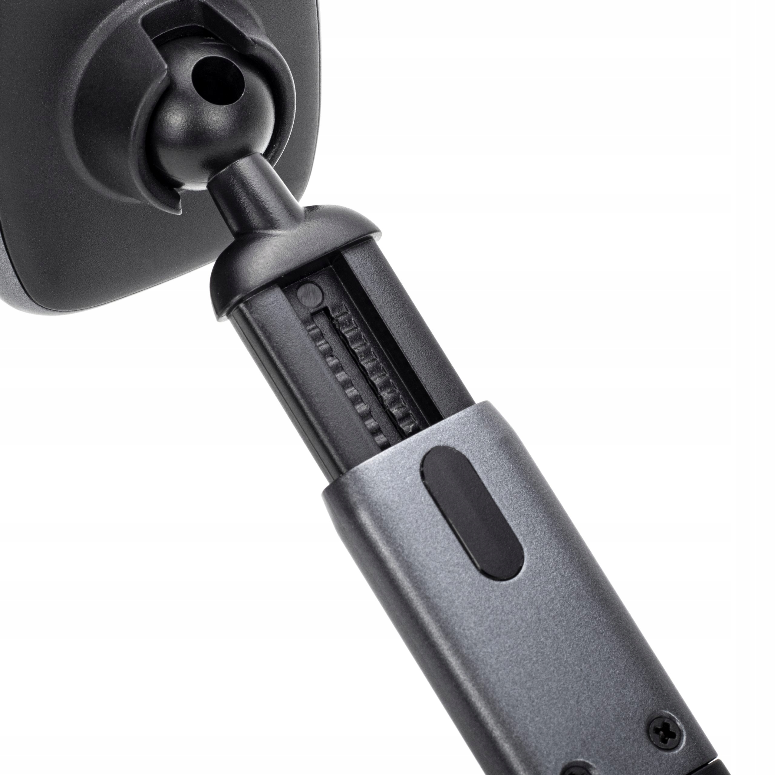 Elastyczne ramię pozwala na dopasowanie kąta widzenia, a możliwość montażu do deski rozdzielczej lub szyby oferuje wszechstronność użytkowania.