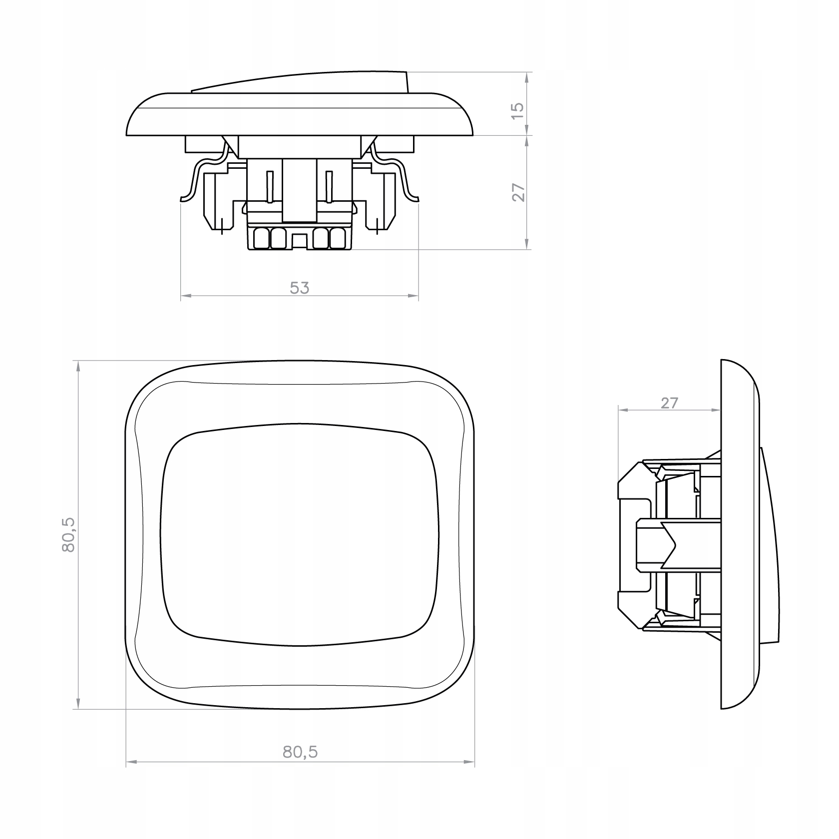 - Wymiary obudowy łącznika: 80 x 80 x 15 mm